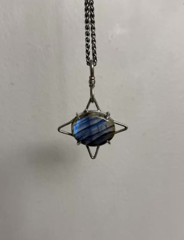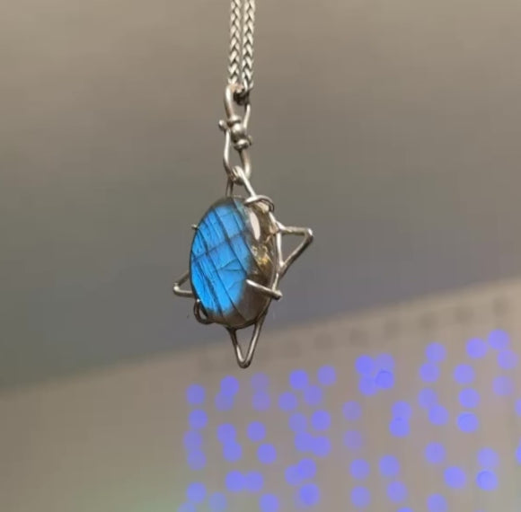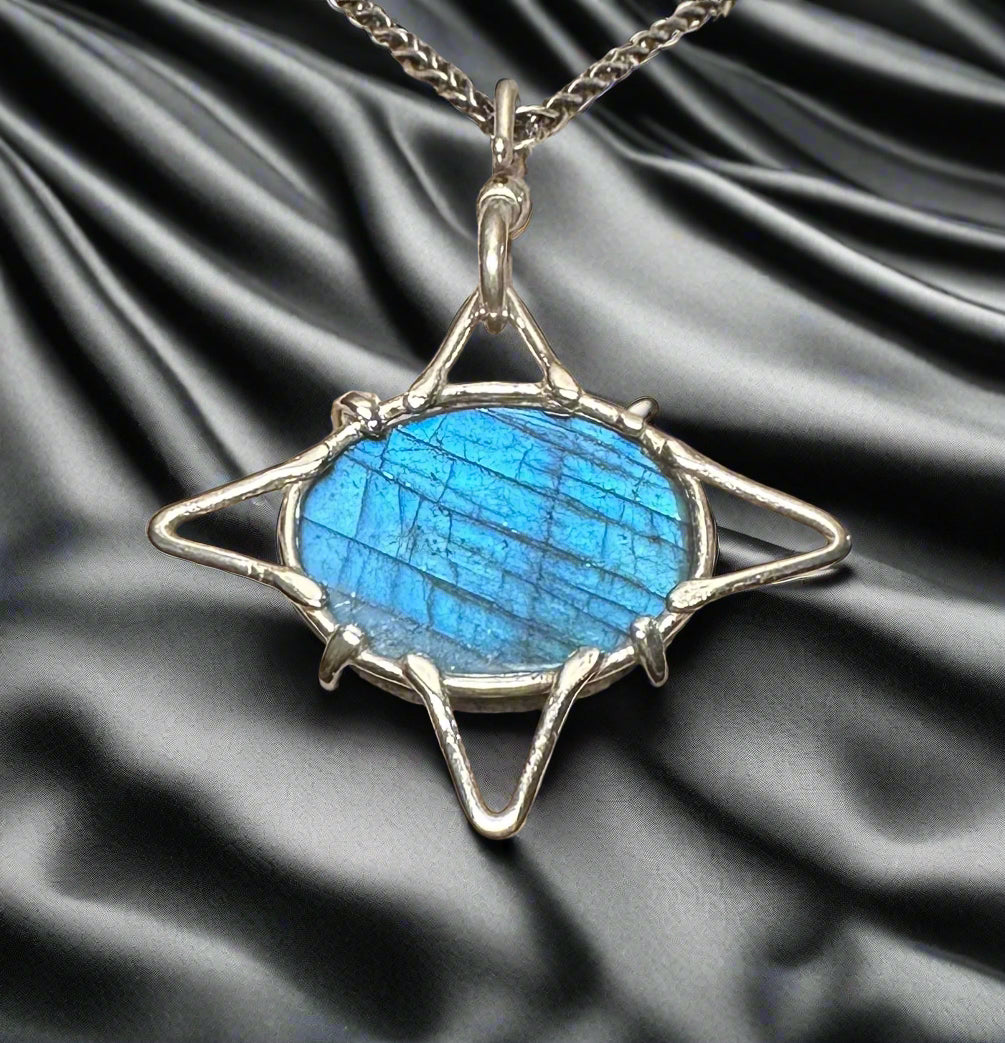 Blue Flame Labradorite & Argentium Silver Star Pendant